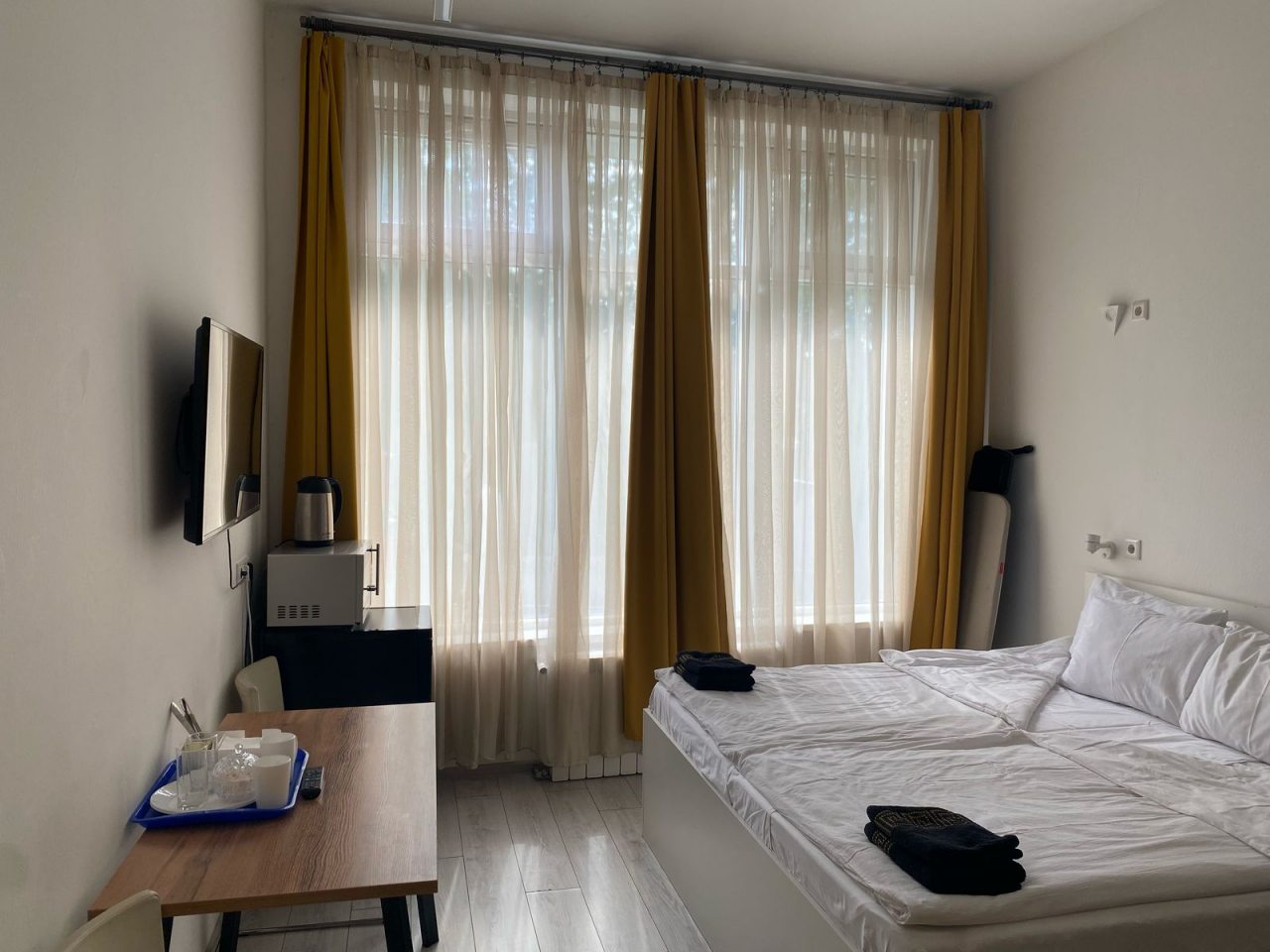 Вас поселят в отдельную комнату с кроватью, свежим постельным бельем и полотенцем. Кондиционер или вентилятор, а также обогреватель в холодный сезон – стандарт, а не опция.