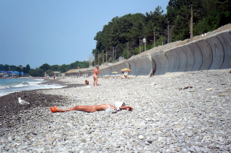 Ищите дикий берег у подножия горы Большой Ахун, в районе устья реки Агура. Добраться можно пешком от остановки «Спутник» вдоль берега в сторону заповедника, путь займет около 40 минут. Это каменистая полоса, отдаленная от основных туристических маршрутов, где сложилась толерантная атмосфера.