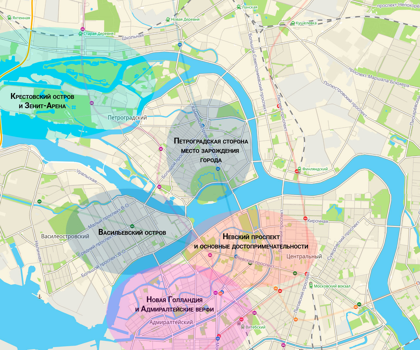 Для первого визита берите Центр или Петроградку. Для повторного или длительного – спокойный Приморский или Васильевский остров.