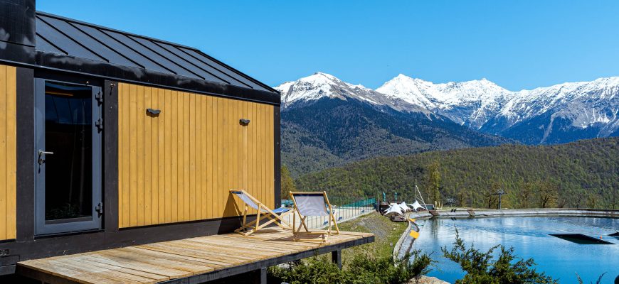 - Отель «Альпийский» в Красной Поляне: семейные сьюты с камином и мини-кухней, до 8 гостей. Есть своя сауна.