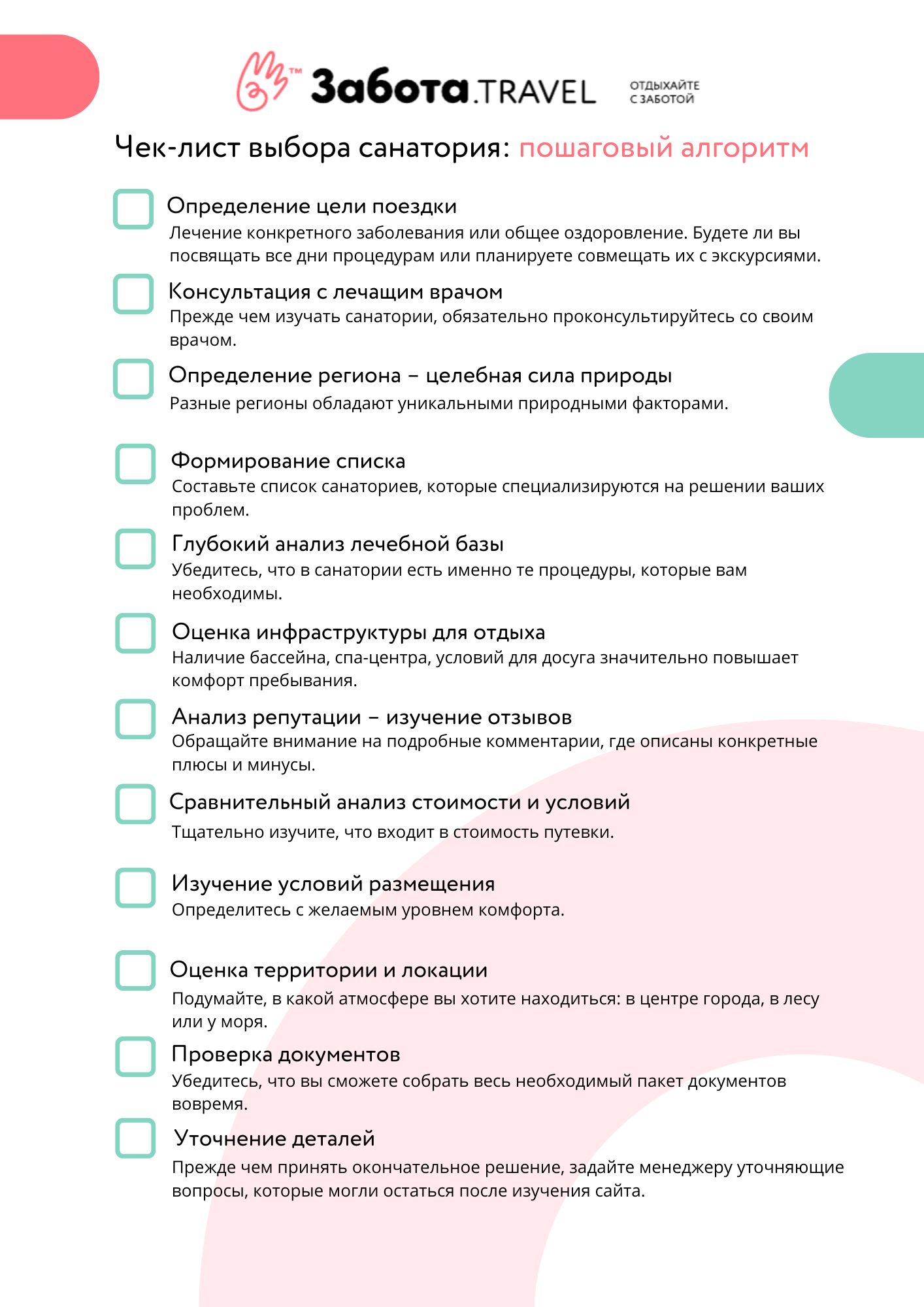 Прямой перелёт или трансфер до 2 часов сохранят силы, которые важнее вида из окна. Узнайте заранее, включены ли диагностика, приём специалистов и основные процедуры в стоимость путёвки. Часто «всё включено» в отдыхе не включает самое необходимое для здоровья.