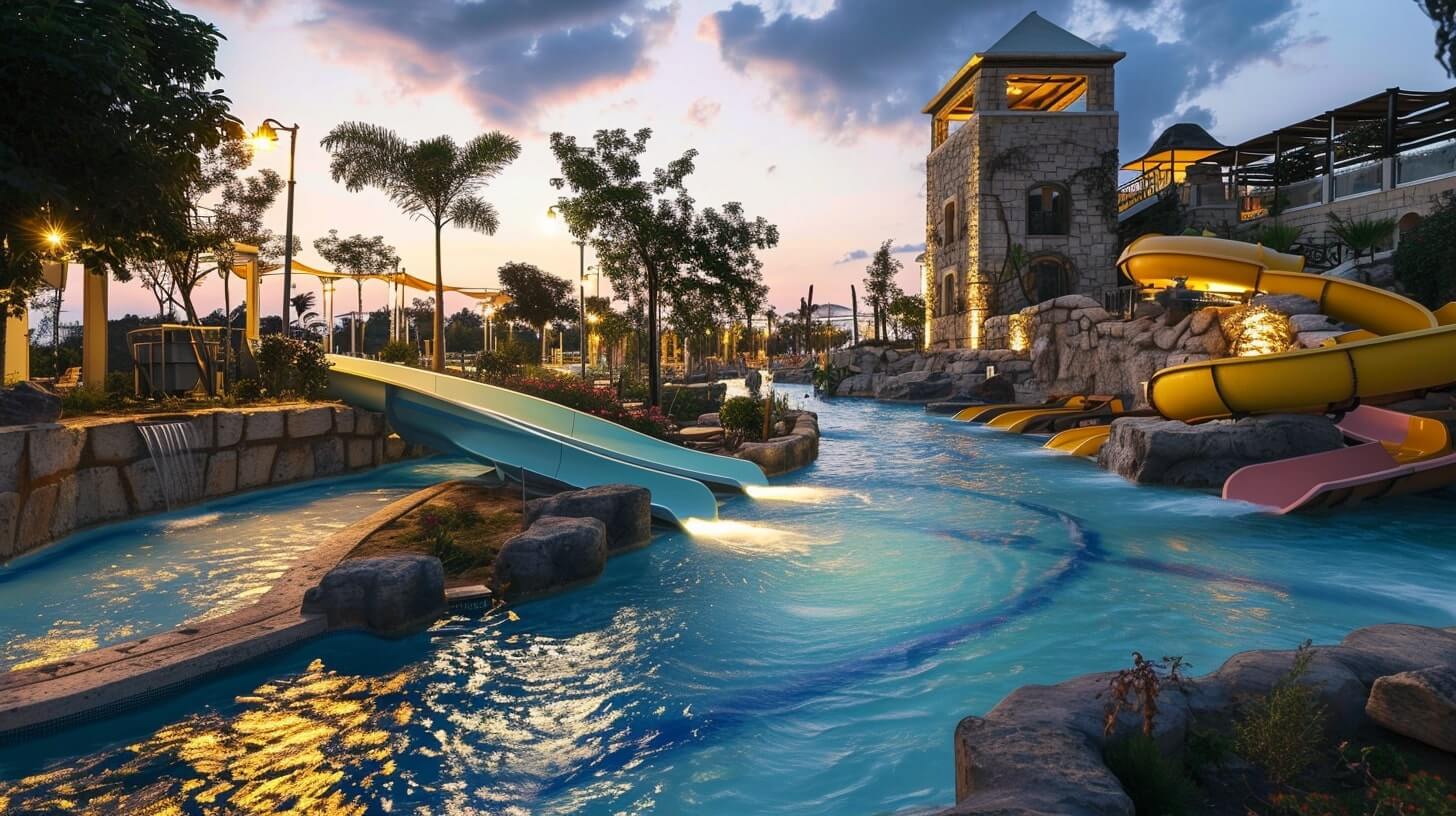 Главное – зонирование. Младенцам нужна отдельная, огороженная площадка с мягким покрытием, навесами от солнца и столиками для пеленания прямо рядом с шезлонгами родителей. Для тех, кто постарше, – сложные горки, скалодромы и водные горки с минимальной высотой 120 см.