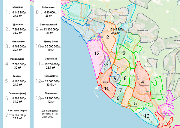- Стоимость «квадрата» на 15-20% ниже, чем в Хосте.