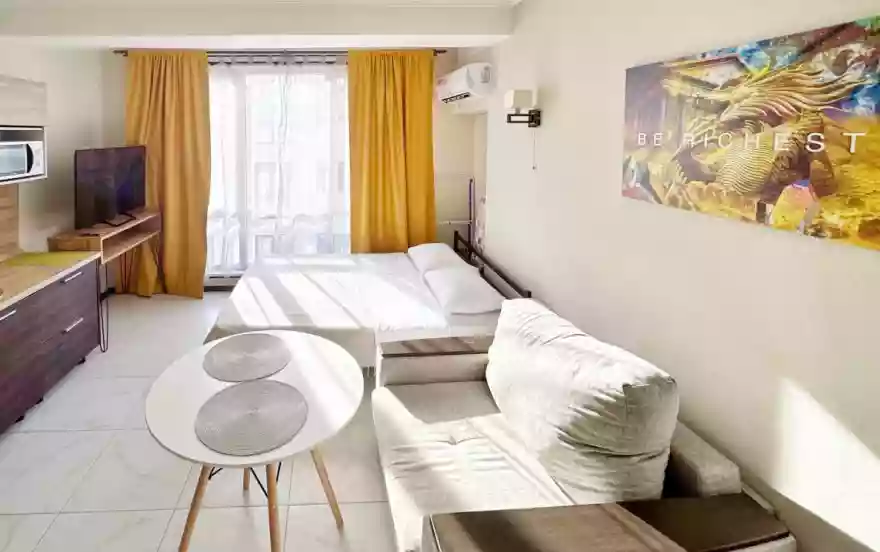 Апартаменты с кухней-гостиной у морского вокзала – оптимальный выбор для деловой встречи или отдыха компанией. Стоимость начинается от 1500 рублей, но в высокий сезон цены взлетают вдвое.