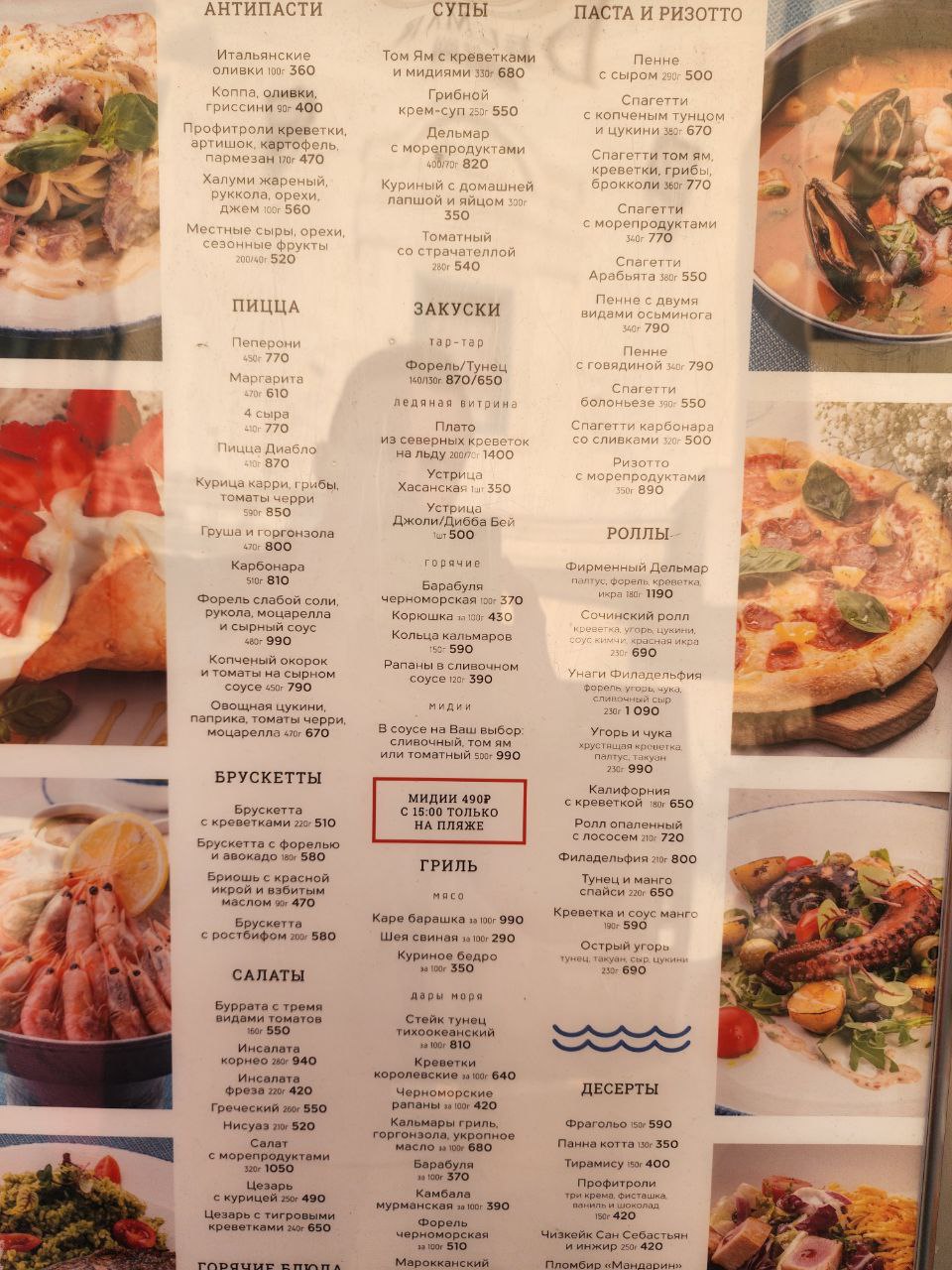 Цены у воды всегда выше. Ожидайте, что средний чек на человека без алкоголя составит от 1500 рублей, а в более простых местах – от 900.