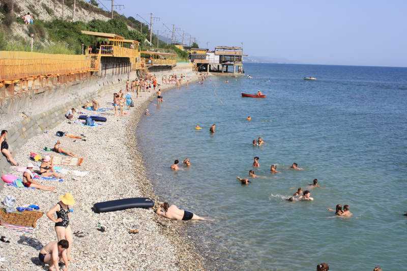 Главная ценность – галечный пляж протяженностью около километра и шириной до 40 метров. Заход в воду достаточно резкий, глубина набирается быстро, что оценят те, кто любит поплавать. Вода обычно чистая, но после штормов могут быть временные ограничения. Инфраструктура на берегу базовая: прокат лежаков, несколько кафе, душ. За более оживленной атмосферой можно за 10 минут доехать на электричке или маршрутке в Лазаревское.