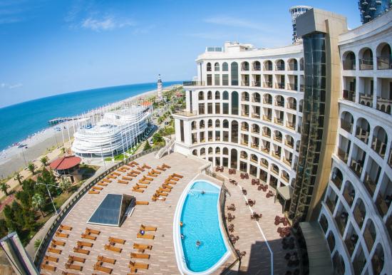 Безусловный лидер – «Шератон Батуми». Угловые люксы на верхних этажах с панорамным остеклением от пола до потока открывают захватывающую дух перспективу от порта до старого города. Закаты здесь – отдельное событие.