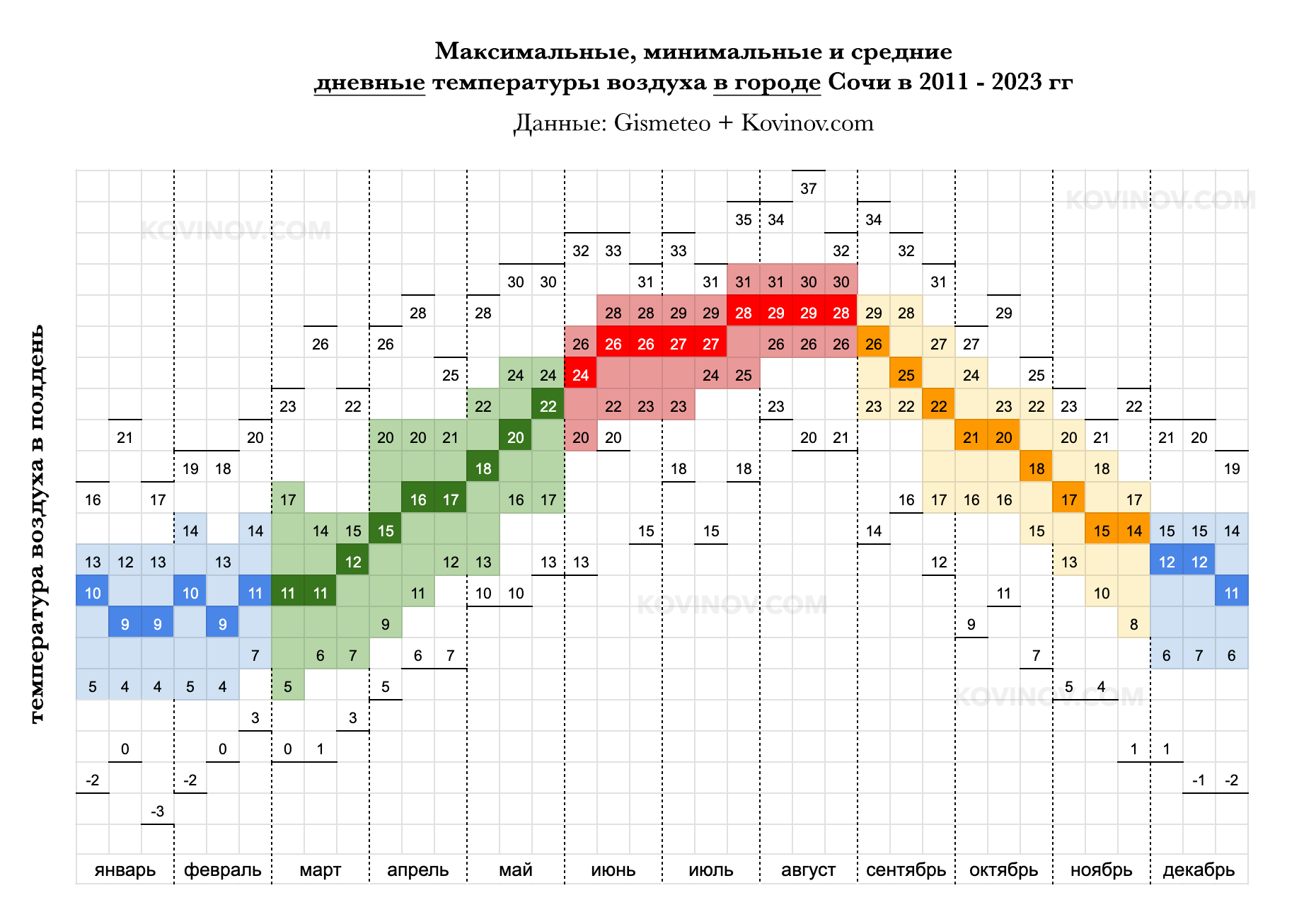 С октября по апрель климат здесь мягкий, но непредсказуемый. Зимой столбик редко падает ниже +5°C, а снег лежит только в горах, что привлекает на склоны Красной Поляны. Однако часты дожди и штормы. Апрель и ноябрь – месяцы-«перевёртыши»: один день может быть солнечным и +18°C, а следующий – дождливым и прохладным.