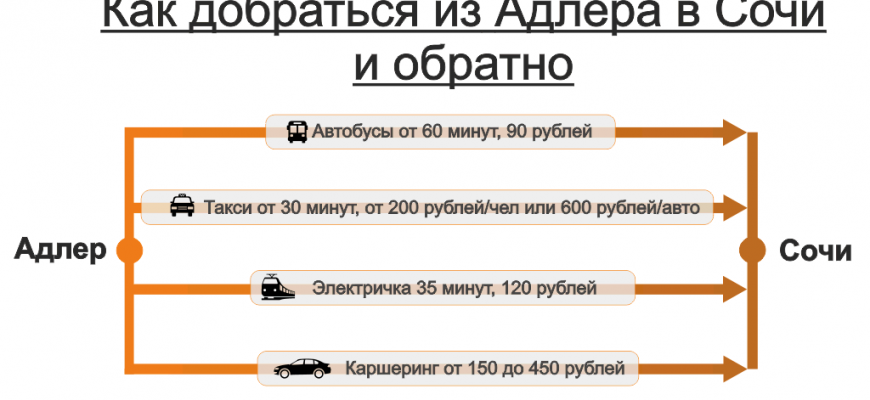 Самый быстрый вариант – электричка «Ласточка». От платформы «Олимпийский парк» или «Имеретинский курорт» до станции «Сочи» вы доедете за 35-40 минут.